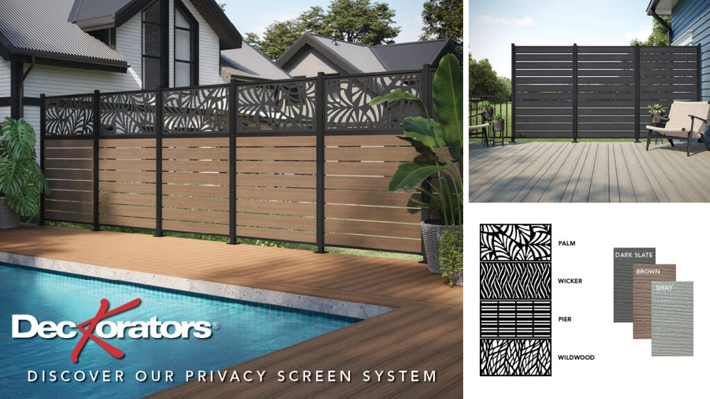 Deckorators® Privacy Screens—mix and match any color decking with four available stylish panel options for privacy and design flexibility